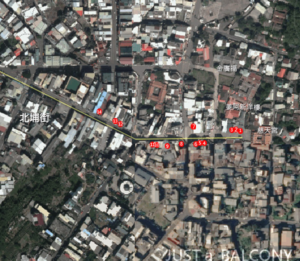 下圖可看到整個北埔鎮上 最顯眼高聳的那幾棟街屋就位在上街
